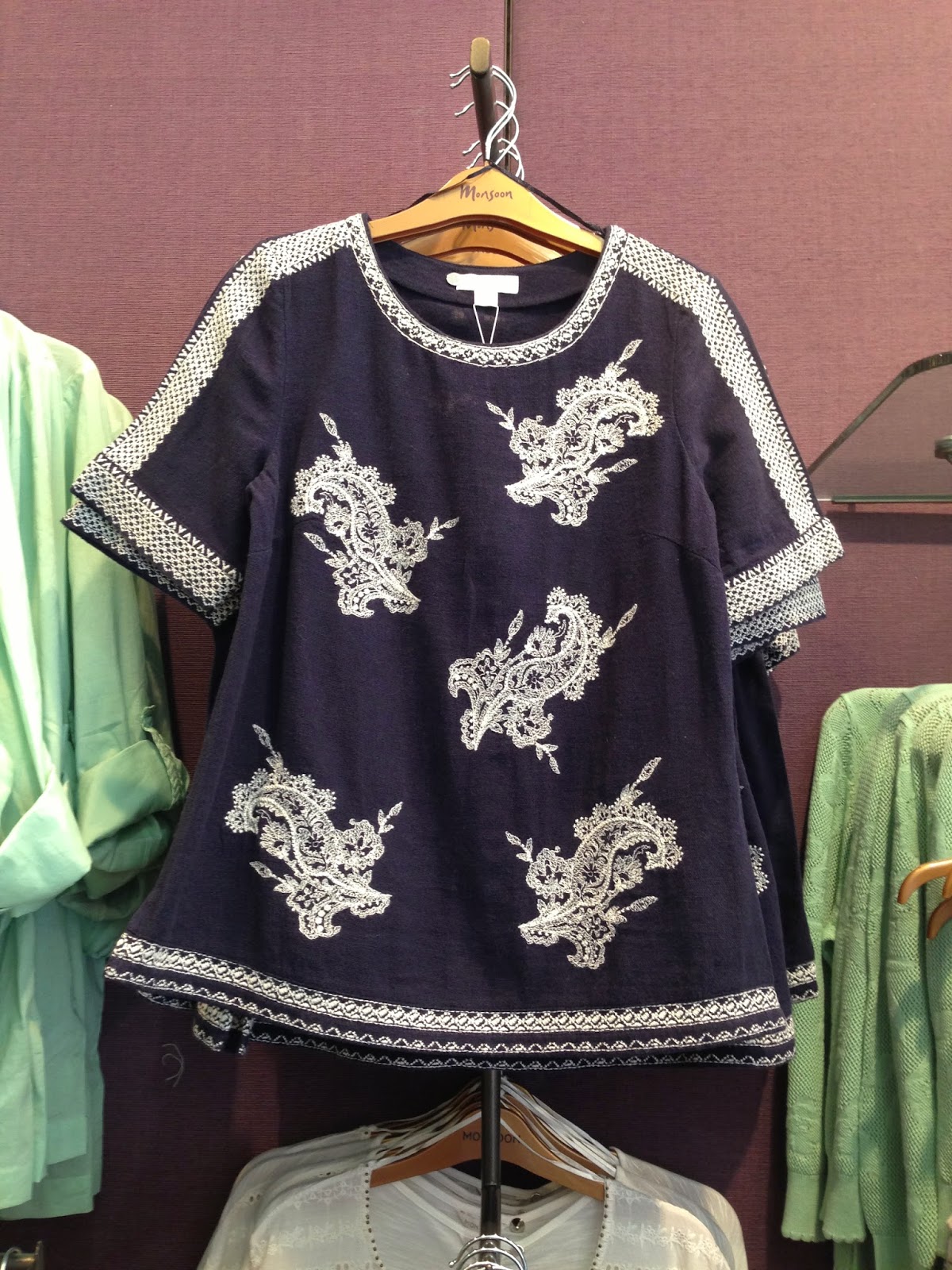 As we walked past Monsoon on the way back to the car park, I begged for a quick look around and my eldest indulged me (thankfully) as I have been falling more and more in love with Monsoon ever since the very first Yasmin Le Bon campaign and with Boho chic being high on every fashionista's radar thanks to Isabel Marant, what do you do if a) you can't afford Marant or b) feel you are just a tad too old for this seasons ethnic offerings from Mango? Well you pop into Monsoon of course!
