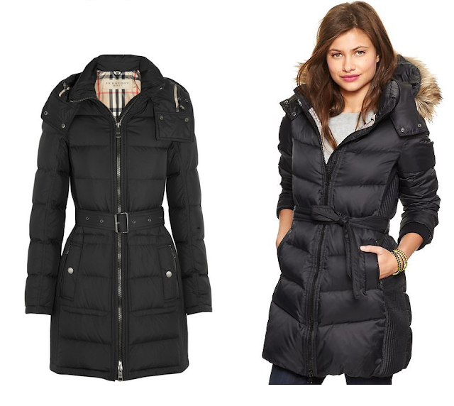 Quilted Down Coat by Burberry Brit £495. Fur Trim Long Puffa £99.95 Gap.